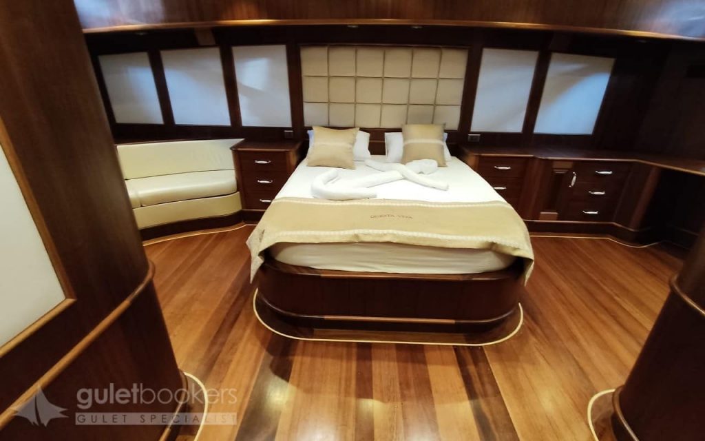 Il lussuoso caicco Questa Vita, uno yacht appena costruito di 33 metri di lunghezza, è stato progettato meticulosamente per offrire ai suoi ospiti un’esperienza incomparabile in mare. Il suo design elegante e contemporaneo, combinato con comfort di prima classe, la rende una scelta eccezionale per chi cerca un equilibrio perfetto tra lusso e avventura.
