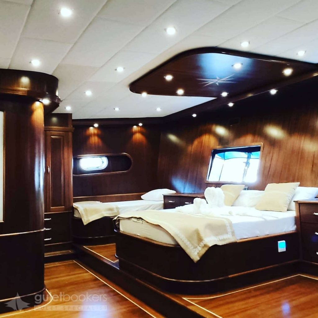 Il caicco offre anche una vasta gamma di attività ricreative per godersi il mare al massimo. Tra queste, ci sono wakeboard, passeggiate in ringo, sci nautico, paddleboarding e molto altro. Per chi preferisce esplorare le acque più tranquillamente, sono a disposizione degli ospiti attrezzature per snorkeling, canoe e attrezzatura da pesca. Inoltre, il sistema musicale a bordo aggiunge un tocco speciale, creando un’atmosfera vivace e divertente mentre ci si rilassa o socializza sul ponte.