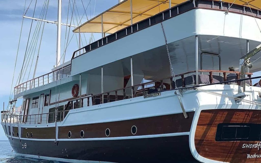 Il caicco Swordfish 3 è un caicco di lusso dotato di 9 cabine: 2 cabine doppie e 7 cabine triple. Vanta una lunghezza di 32 metri e una larghezza di 7,20 metri. Ristrutturato nel 2022, offre comfort e servizi moderni. L’equipaggio è composto da 6 membri tra cui il capitano, lo chef, il marinaio e l’hostess. Vola la bandiera turca e ha come porto d’origine Bodrum.