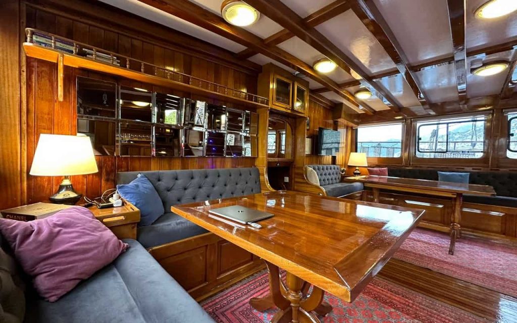 Per rinfrescarsi, il Swordfish 3 offre un fabbricatore di ghiaccio, macchina del caffè turco, macchina per espresso e macchina per caffè filtro. Le opzioni di intrattenimento includono TV satellitare nel salone e in ogni cabina, insieme all’accesso Wi-Fi in tutto il caicco. Inoltre, ogni cabina è dotata di una cassaforte per custodire i beni degni.
