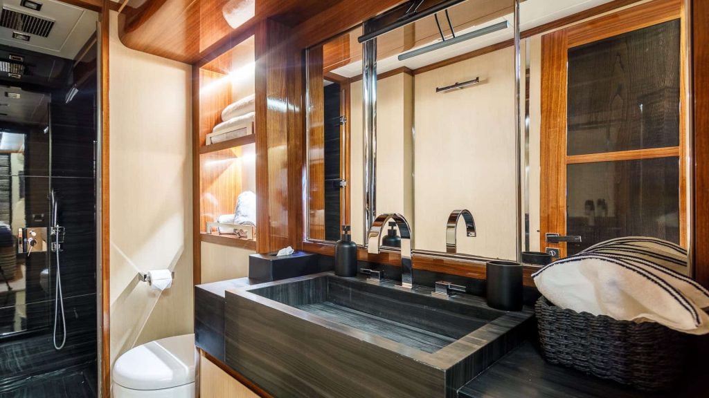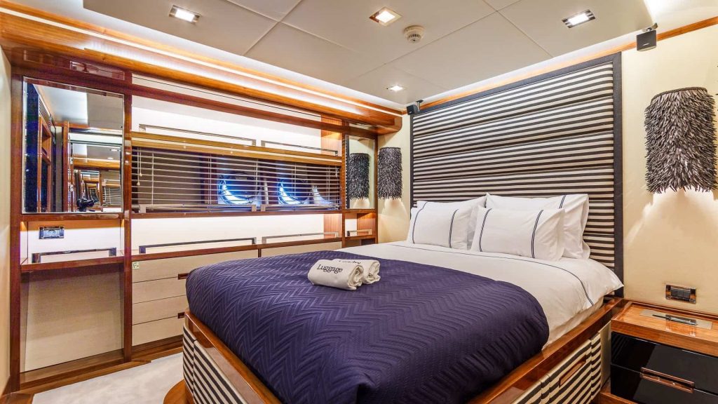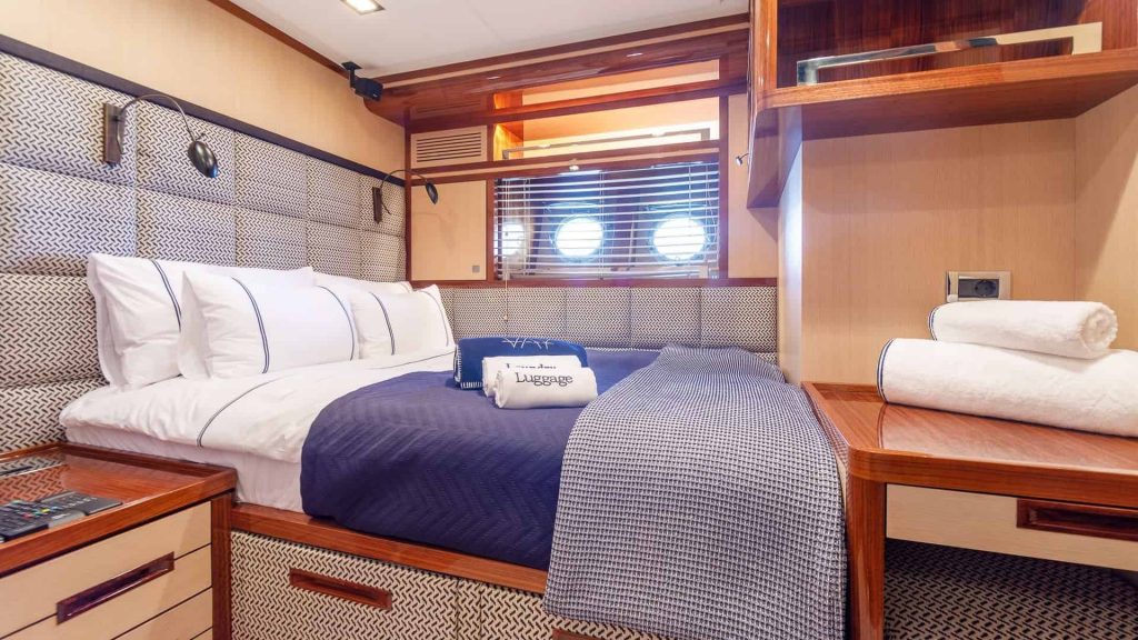 Il VIP caicco Vay, costruito nel 2013 e lungo 31,05 metri, offre un’esperienza di noleggio yacht di lusso nelle splendide acque della Grecia. Questo elegante yacht vanta una raffinata disposizione delle cabine, progettata per garantire comfort e privacy, tra cui una cabina armatoriale e quattro cabine doppie. La cabina armatoriale, una delle principali caratteristiche del VIP caicco Vay, è dotata di biancheria da letto di alta qualità, ampi spazi di stivaggio e un design elegante. Le ampie finestre offrono viste mozzafiato e abbondante luce naturale, arricchendo l’atmosfera della cabina.